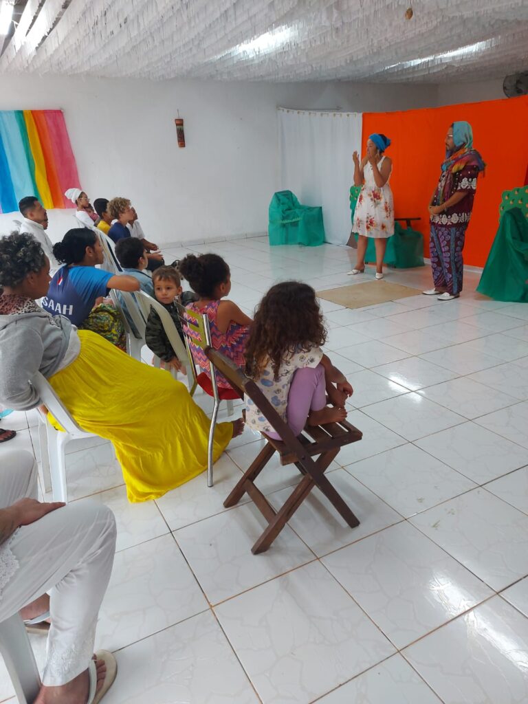 Apresentações teatrais com roteiros interpretados por crianças e adolescentes;