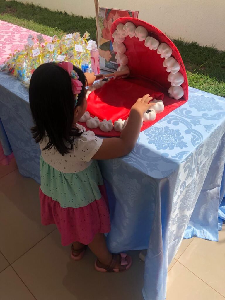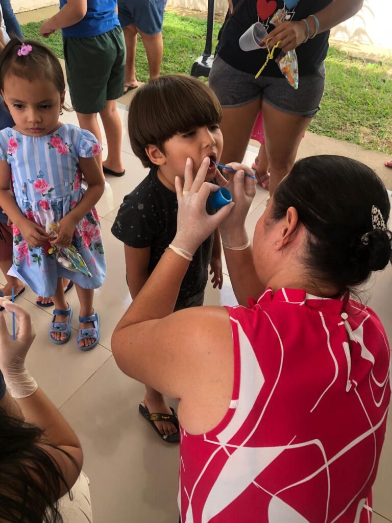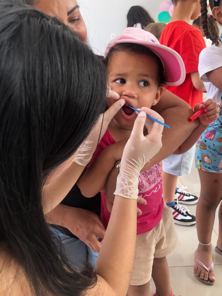 Durante a ação, as crianças participaram de uma palestra interativa sobre escovação correta, alimentação saudável e prevenção de cáries. De forma lúdica e divertida, elas aprenderam como cuidar bem dos dentes e entenderam o papel fundamental da higiene bucal para a saúde geral do corpo.